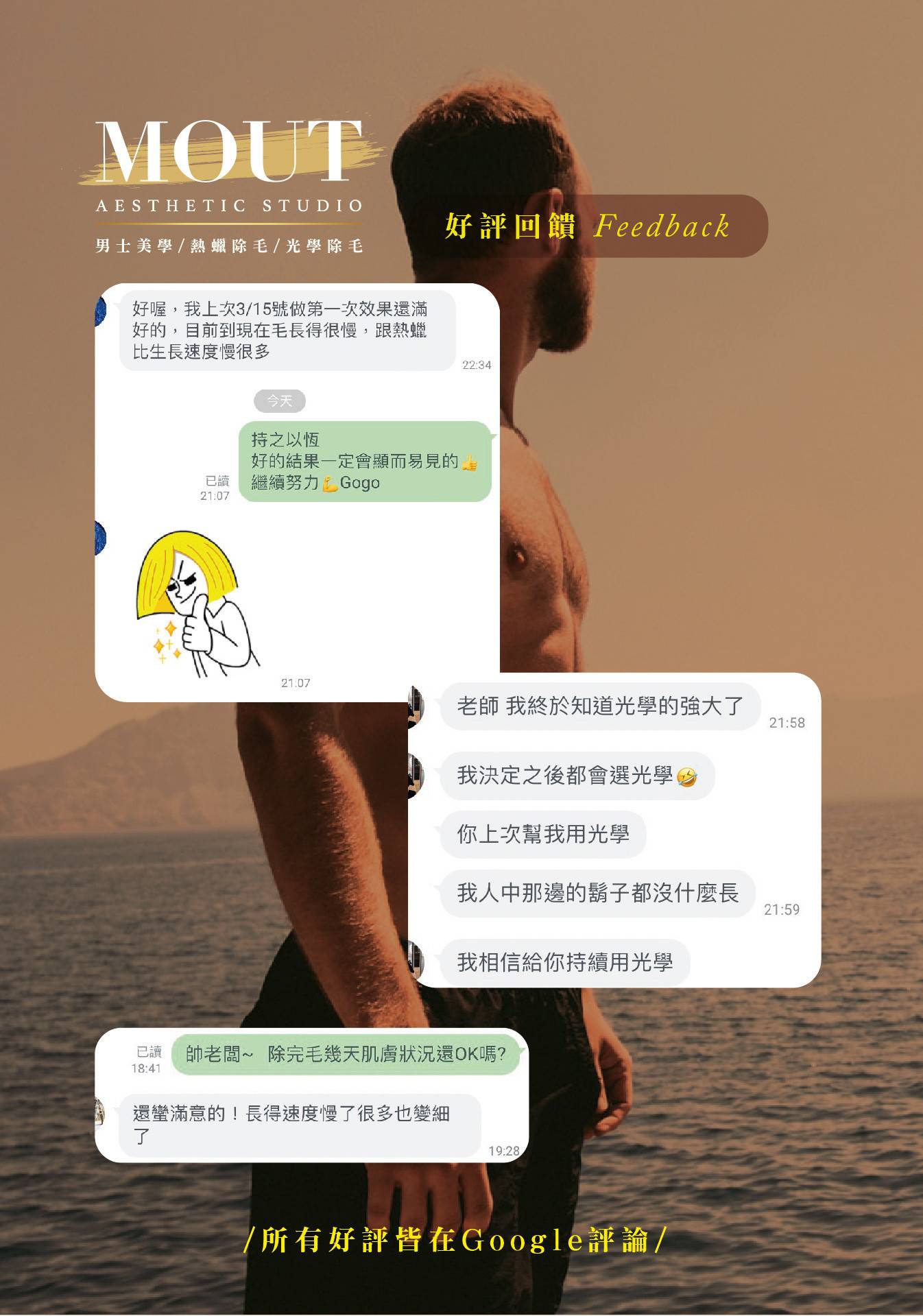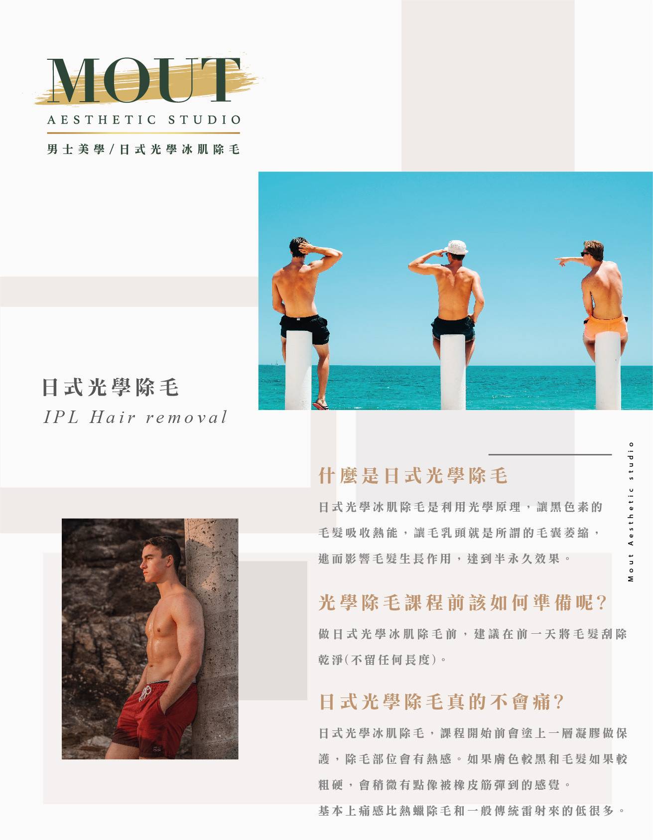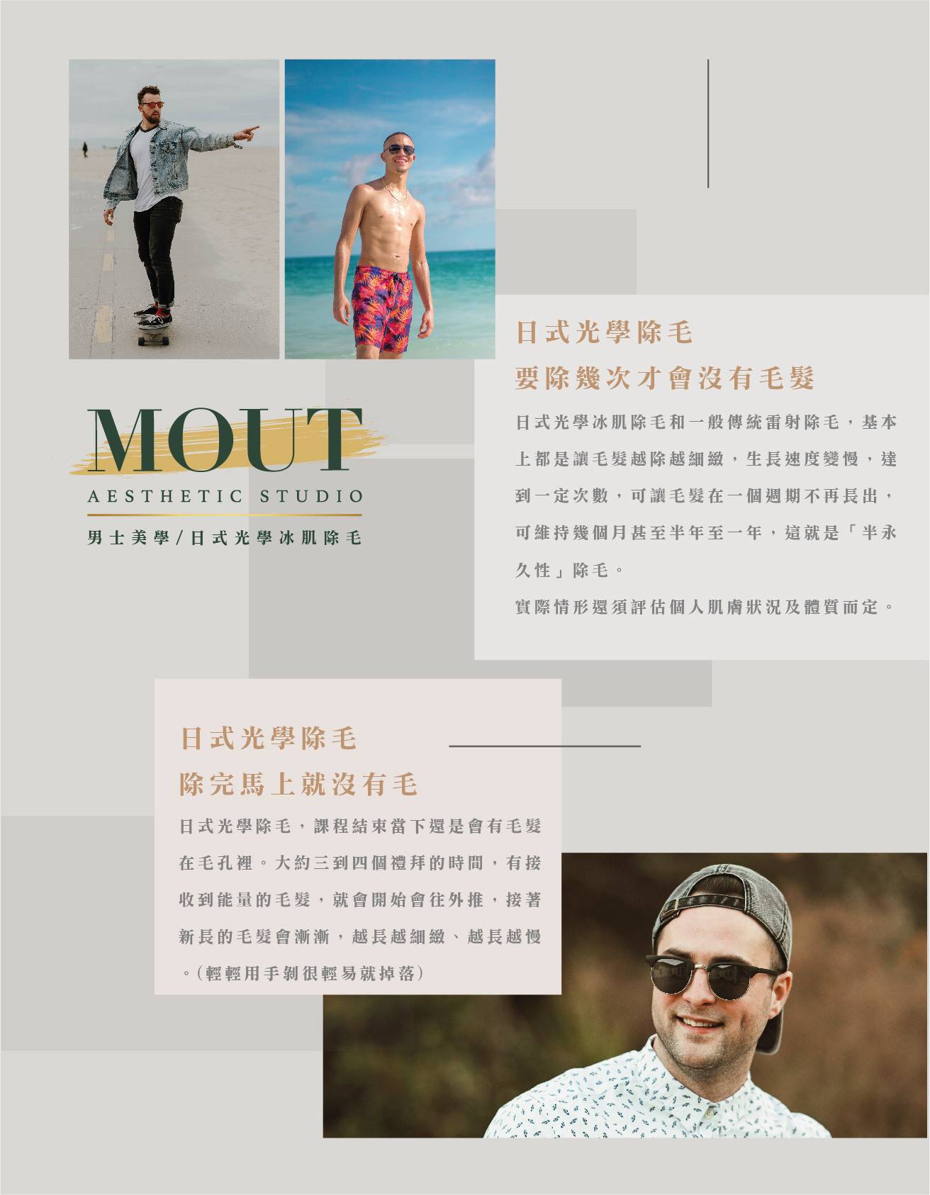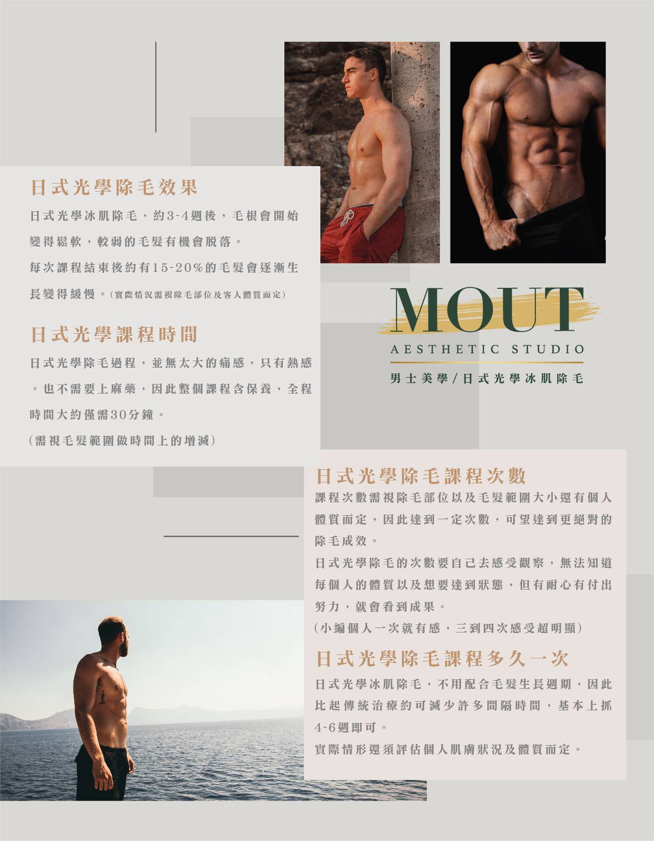 男士日式光學除毛,桃園中壢男士專業除毛、Mout男士美學、男士熱蠟除毛、日式光學冰肌除毛、男性除毛師、桃園中壢除毛