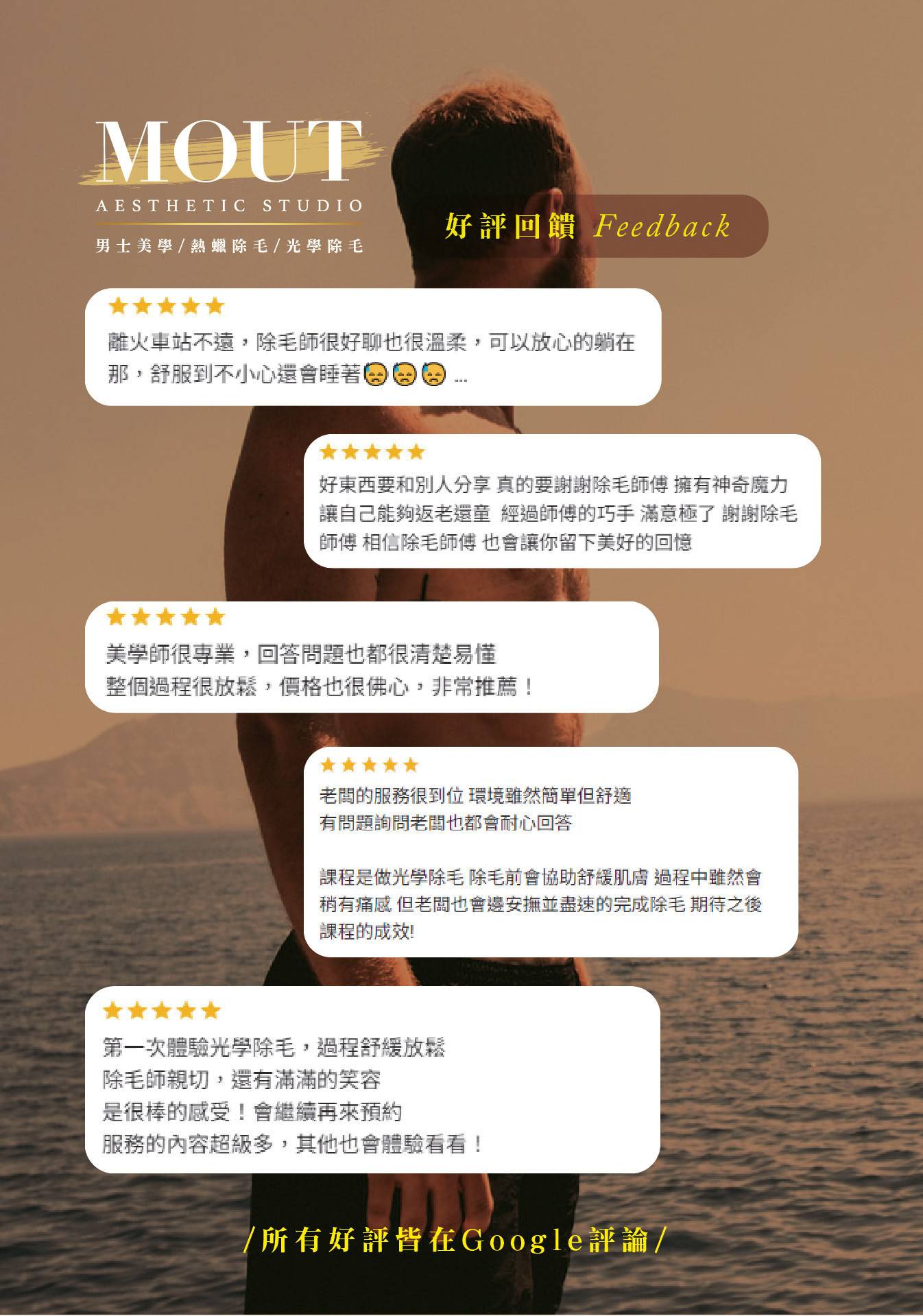 桃園中壢男士專業除毛、Mout男士美學、男士熱蠟除毛、日式光學冰肌除毛、男性除毛師、桃園中壢除毛